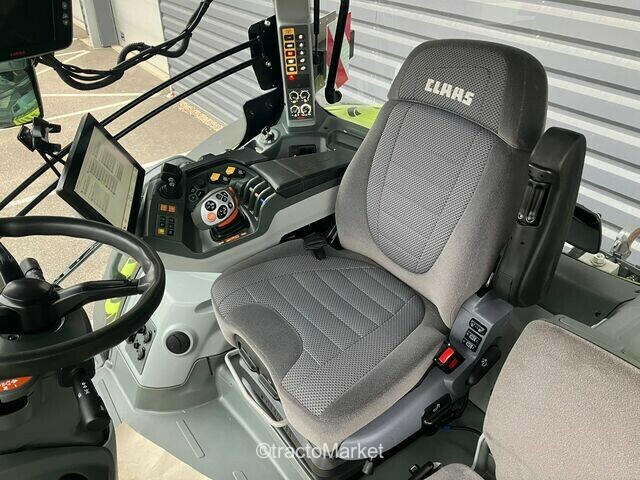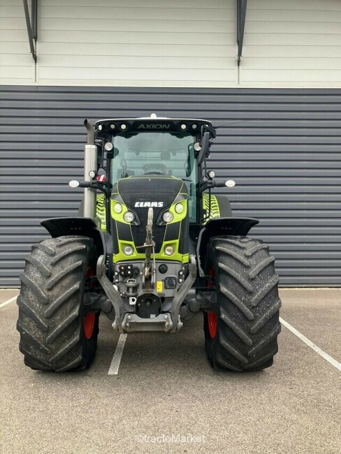AXION 850 CMATIC, Puiss. nomin. homol. 261 ch, puiss. maxi. homol. 278 ch, ECE R120, Transmission à variation continue CMATIC (ZF TM 25-28), Vitesse maximale 50 km/h, Pont avant PROACTIV freiné, Prise de force 540 ECO + 1000/1000 ECO tr/min, Cabine avec suspension en 4 points, Siège confort, tissu, à suspension semi-active latérale, Climatisation automatique, Autoradio MP3 avec Bluetooth, micro externe pour kit mains libres, 5 + 2 distributeurs électro-hydrauliques proportionnels (CEBIS), 4 sorties hydrauliques AV + 1 ret. (avec DEH ss cab), Freinage hydraulique avec freinage pneumatique, ELECTROPILOT, Prise de force avant 1 000 tr/min, Relevage avant CLAAS 4,6 t, 650/85 R38 Michelin Machxbib / jante fixe, 600/70 R30 Michelin Machxbib / jante fixe